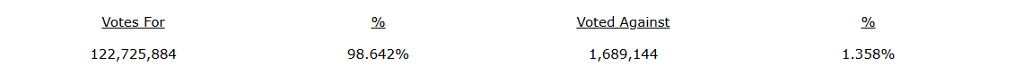 An ordinary resolution of the shareholders of the company to approve the company's new performance share unit plan was approved at the meeting by way of a ballot (see an attached table).