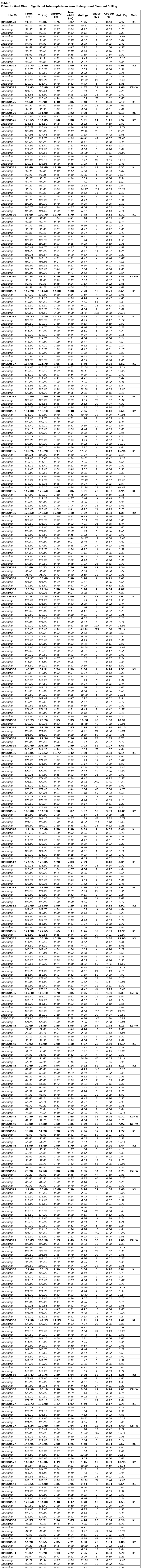 The results for the latest 62 diamond drill holes completed from surface and underground are summarized in the attached tables. Drilling results include the discovery of high-grade mineralization at the Judd J2 vein to the south while also continuing to demonstrate the high-grade, continuity and expansion potential of the Kora/Kora South and Judd/Judd South vein systems. The J2 vein is not part of the current resource estimate.