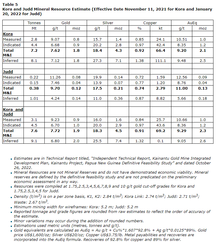Looking ahead, we are very excited to be imminently commencing drilling of Kora Deeps from the twin incline. Kora Deeps is a highly prospective target, drilling the lower portion and down-dip extension of the Kora resource. Underground drilling at Kora South and Judd South is also advancing at depth from the 1205 Level drill drive to test the down-dip extension of the mineralization defined by the surface drill program.
