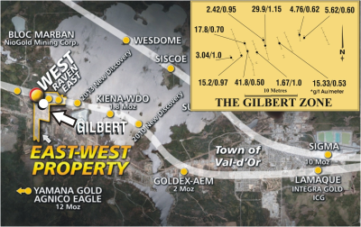 This structure is host of the Marban deposit adjacent to the west of the property and the Kiena Mines complex to the immediate east of the property side. The gold bearing nature of the Marbenite fault which traverses the East-West property is illustrated by its surface gold showing distribution which encompasses a 600 meters wide corridor.