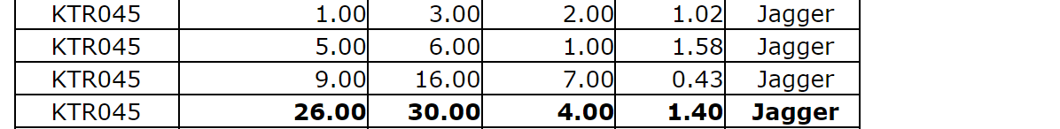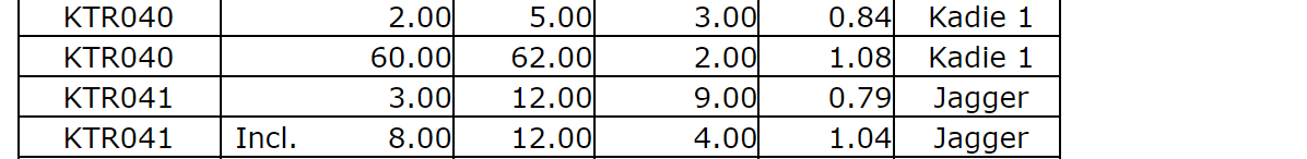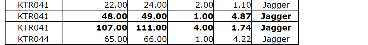 KTR045 -- 1.40 g/t Au over four m (Jagger zone).