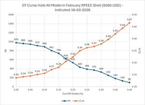 Table 2. Indicated Resource Grade-Tonnage – 16 March 2026