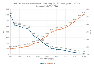 - The Mineral Resource Statement for Haib as of 16 March 2026 is reported at a cut-off grade of 0.15% Cu within a conceptual pit shell using the following assumed parameters: