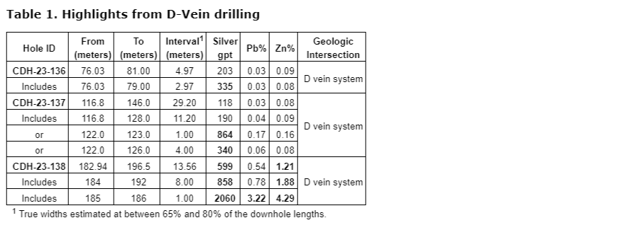 James McDonald, Kootenay's president and chief executive officer, states: "These are important holes because they increase the volume of mineralization in the D vein shoot with impressive grades and widths. These holes are 50-metre stepouts from excellent intercepts previously reported (see news release dated Sept. 8, 2022) and support our working interpretation along the D vein."