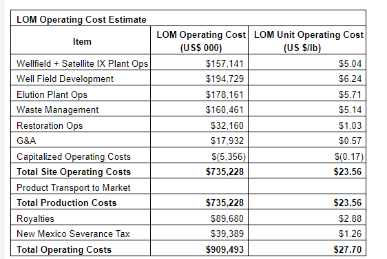 The capital and operating cost estimates for ISR mineral recovery and yellowcake production in the PEA are based on factored costs from other comparable ISR operations, judgment and analogy. Although there was some previous commercial underground mining production experience at Churchrock area, this technical report concerns only the ISR method for the U3O8 (triuranium octoxide).