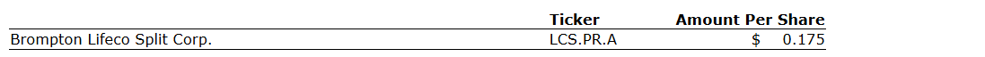 Brompton Funds has declared distributions payable on Aug. 15, 2025, to Class A shareholders of record at the close of business on July 31, 2025, for each of the funds shown in the attached table.