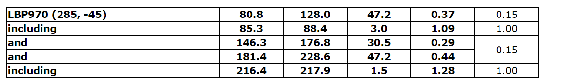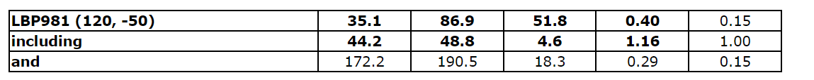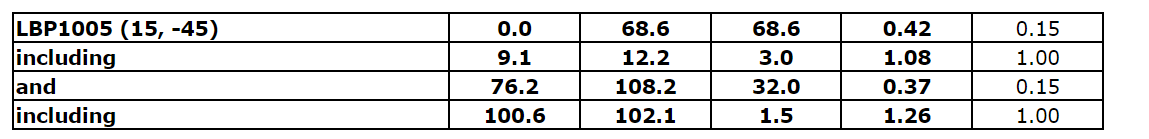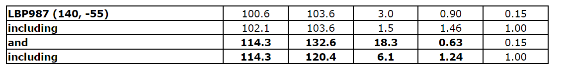 Drill results from 16 additional RC drill holes completed in the Back Range zone have been received, with results confirming the known mineralization and opening up potential new zones of mineralization to the north and west. Notably, a thick zone of mineralization defined by hole LBP1005 begins at surface and extends down to 100 metres depth. This is the northernmost hole drilled in the Back Range zone, and this new zone of mineralization is open for extension and expansion through additional drill testing in 2024.