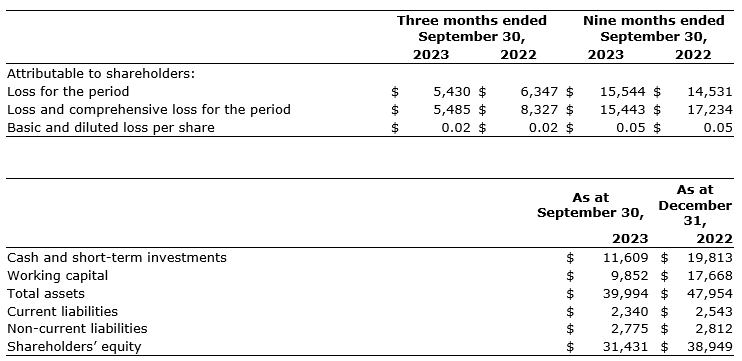 The attached selected financial data are derived from its unaudited condensed interim consolidated financial statements and related notes thereto for the nine months ended Sept. 30, 2023, as prepared in accordance with international accounting standard 34 (Interim Financial Statements).