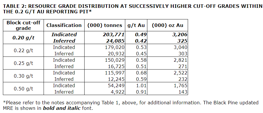 LIBERTY GOLD ANNOUNCES UPDATED MINERAL RESOURCE ESTIMATE FOR THE BLACK PINE OXIDE GOLD DEPOSIT, IDAHO