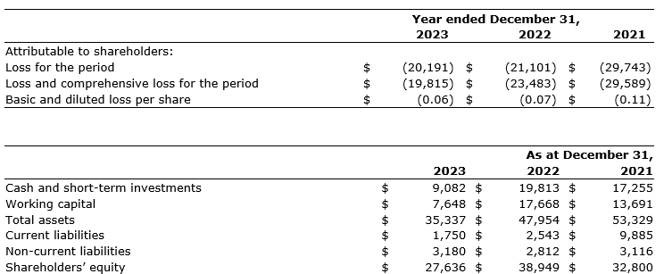 • On Sept. 15, 2023, closed a non-brokered private placement, raising proceeds of $5.7-million, anchored by a $5.0-million strategic investment by Wheaton Precious Metals Corp.;