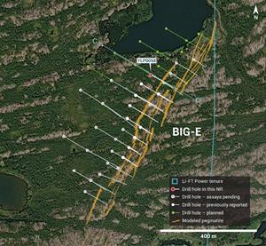 Figure 5 – Plan view showing the surface expression of the BIG East pegmatite with diamond drill holes reported in this press release.