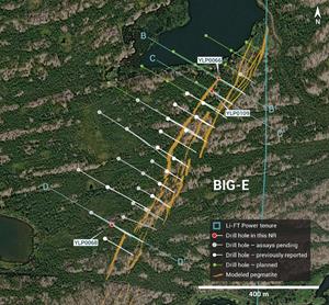 Plan view showing the surface expression of the BIG-East pegmatites with diamond drill holes reported in this press release.