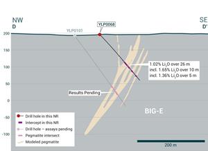 - YLP-0068: 26 m at 1.02% Li2O, (BIG East)