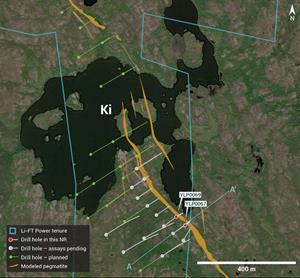 This news release provides the first 2023 drilling results from the Ki pegmatite dyke, which comprises an approximately 20 m thick pegmatite flanked by one or more 1-5 m wide dykes. The main dyke dips 65°-80° to the southwest and extends for at least 600 metres on surface and 100 metres downdip (Table 1 and 2, Figures 6 and 7).