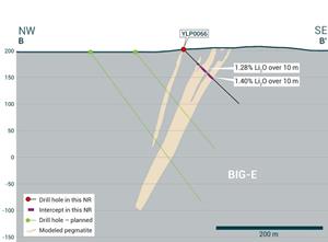 - YLP-0066: 10 m at 1.40% Li2O, (BIG East)