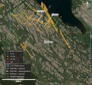 Francis MacDonald, CEO of LIFT comments, “The first drill results from our Echo target have been a positive surprise. Our model at the time indicated that the pegmatites were steeply dipping. What we discovered after drilling the first hole was that there are three separate pegmatite bodies that are shallowly dipping at depth. This geometry is very favorable for mining. We look forward to releasing additional drill results from Echo and to continue drill-testing this target in the upcoming drill program which is scheduled to start in January 2024.”
