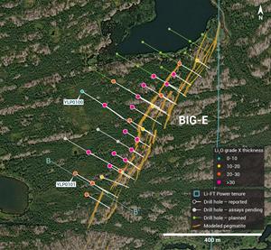 Figure 7 – Plan view showing the surface expression of the BIG East pegmatite with diamond drill holes reported in this press release.