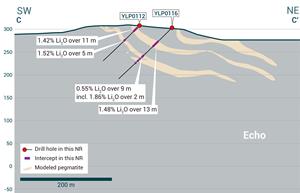 including: 5 m at 1.46% Li2O - YLP-0116: 13 m at 1.48% Li2O, (Echo)