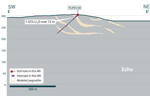 including: 2 m at 1.86% Li2O - YLP-0124: 12 m at 1.52% Li2O, (Echo)