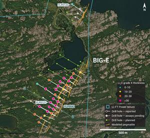 Plan view showing the surface expression of the BIG East pegmatite with diamond drill hole reported in this press release.