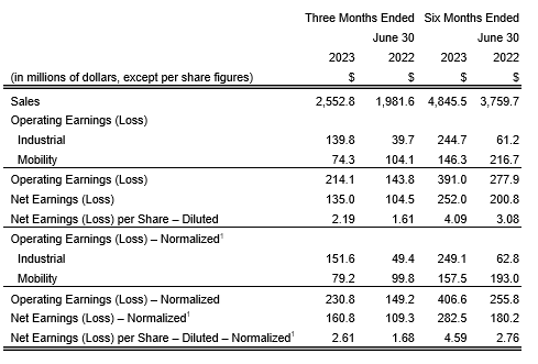 Linamar Corp. has released second quarter 2023 results: