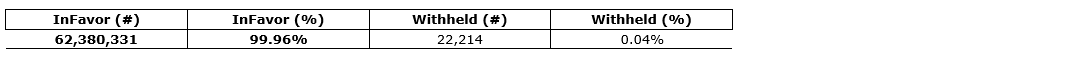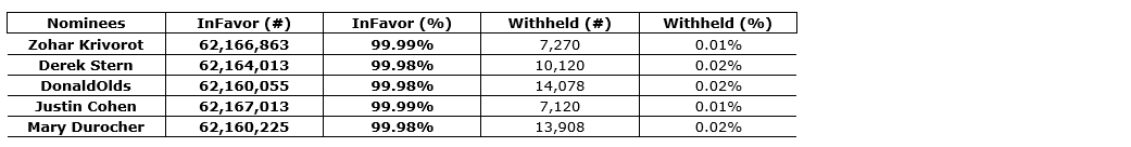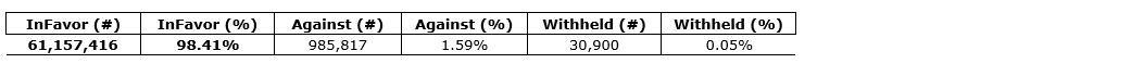 Voting results from annual general and special meeting of shareholders