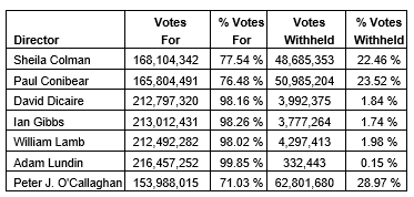 Shareholders elected seven board members, with shareholders represented at the meeting voting in favour of individual directors as shown in the attached table.