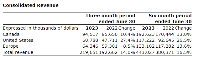 Revenue for the second quarter of 2023 of $219.7-million was higher than that in the second quarter of 2022. The average quarterly exchange rate of the United States dollar relative to the Canadian dollar in the second quarter of 2023 was 1.3431 versus 1.2765 in the same period of 2022. The average quarterly exchange rate of the British sterling pound relative to the Canadian dollar increased from 1.6031 in the second quarter of 2022 to 1.6814 during the current quarter. The average quarterly exchange rate of the British sterling pound relative to the United States dollar decreased from 1.2601 in the second quarter of 2022 to 1.2520 in the current quarter. Had the foreign exchange rates remained at levels experienced in the second quarter of 2022, reported revenues in the second quarter of 2023 would have been lower by $8.7-million.