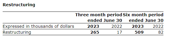 In response to COVID-19, the corporation applied and recognized the CEWS subsidy of $3.8-million in the fourth quarter of 2021, and reduced the expense that the subsidy offsets (none in 2022 or 2023). In the fourth quarter of 2022, the corporation continued the restructuring efforts in Europe of a plan initiated in 2020 to lower its production cost base and recognized a $2.8-million restructuring charge, including a $1.8-million impairment loss related to assets made obsolete as a result of the plan.
