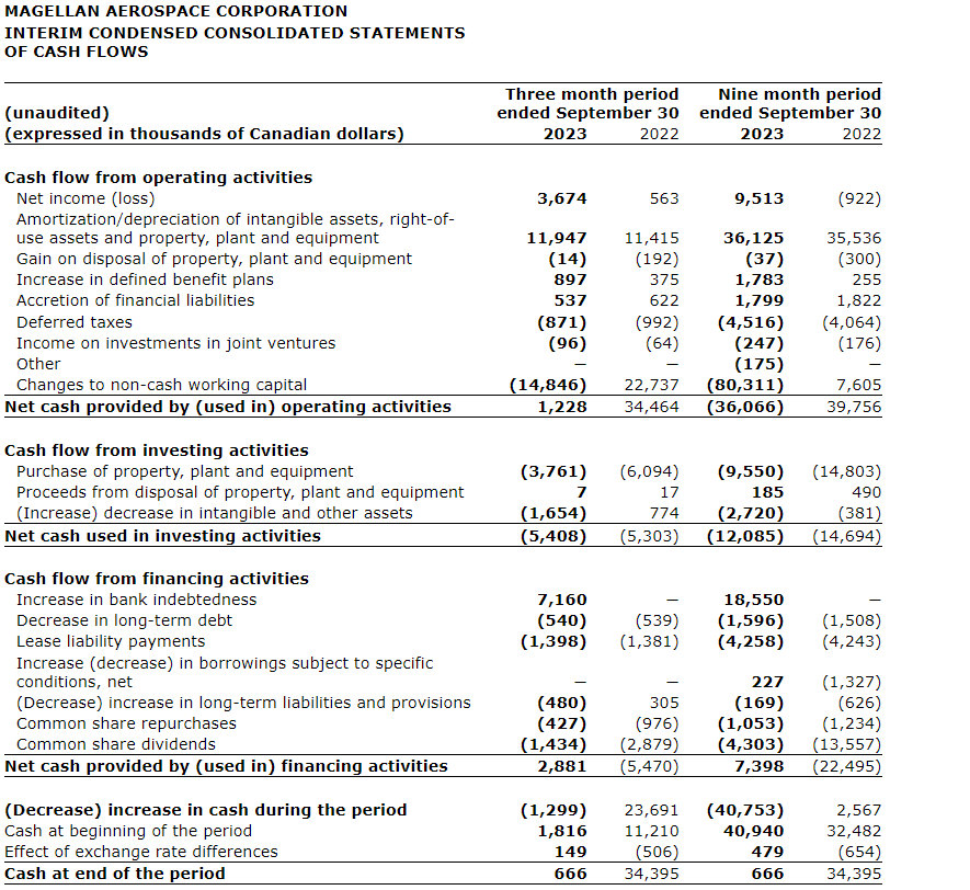 Magellan Aerospace Corp. has released its financial results for the third quarter of 2023. All amounts are expressed in Canadian dollars unless otherwise indicated. The results are summarized as shown in the attached table.
