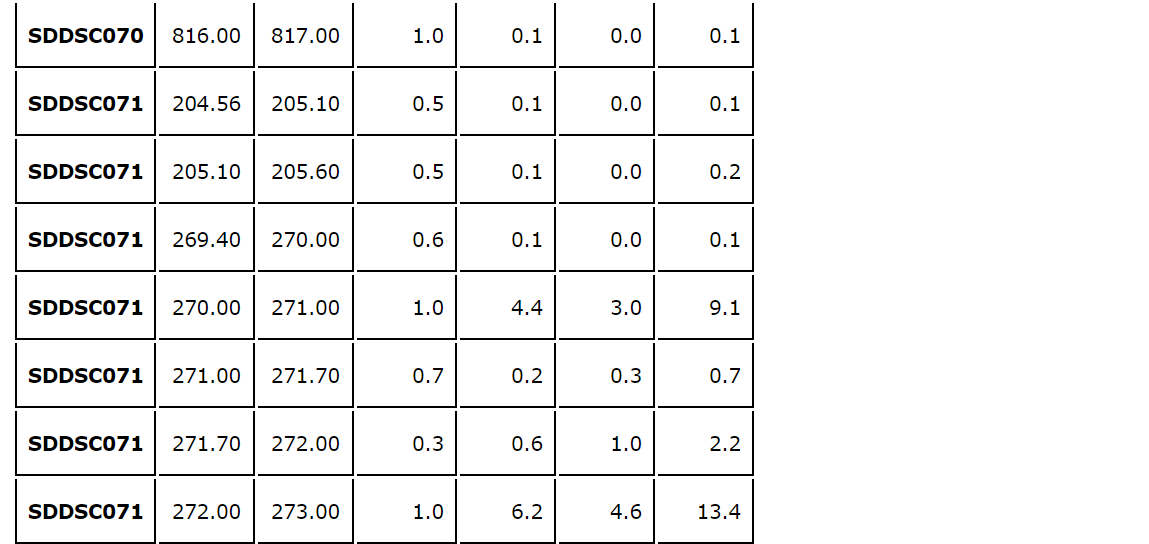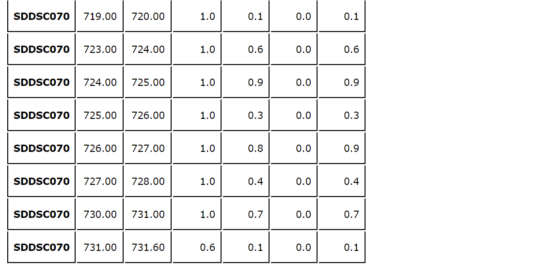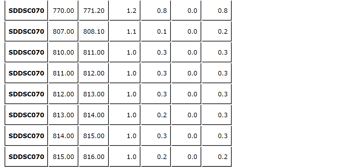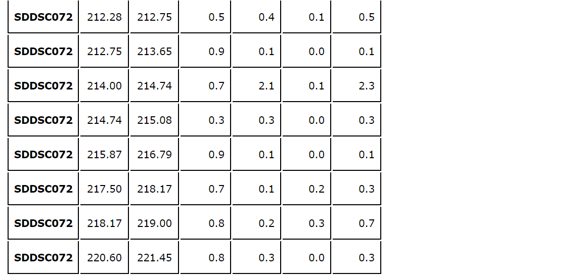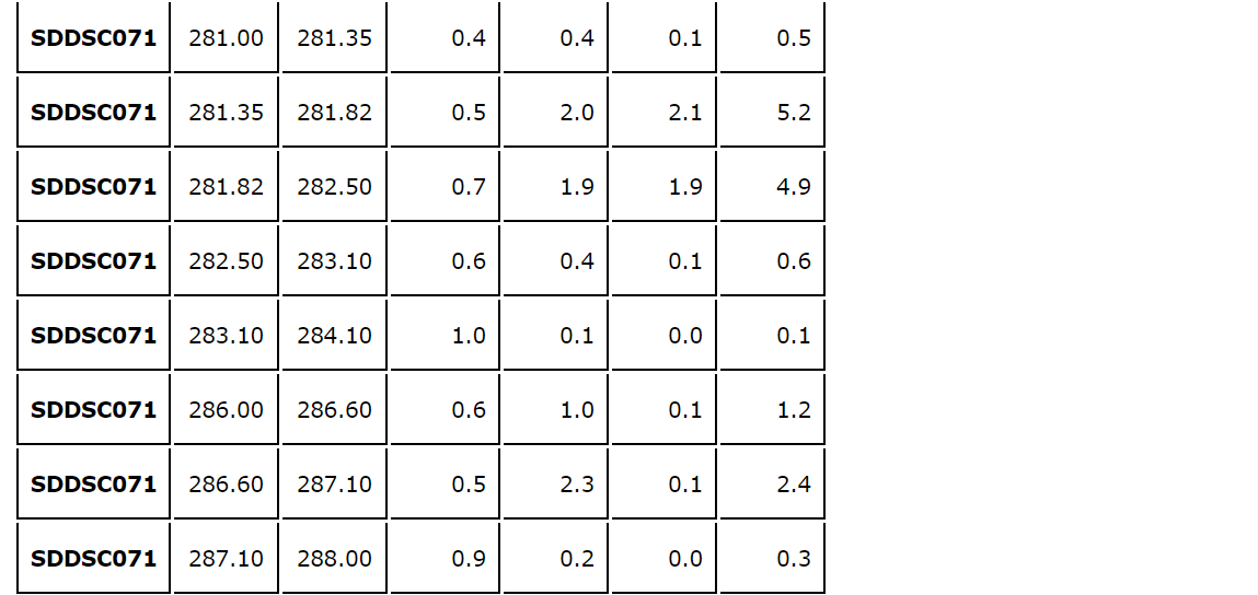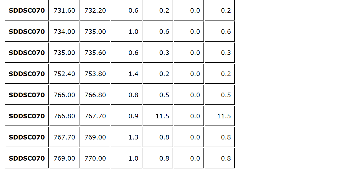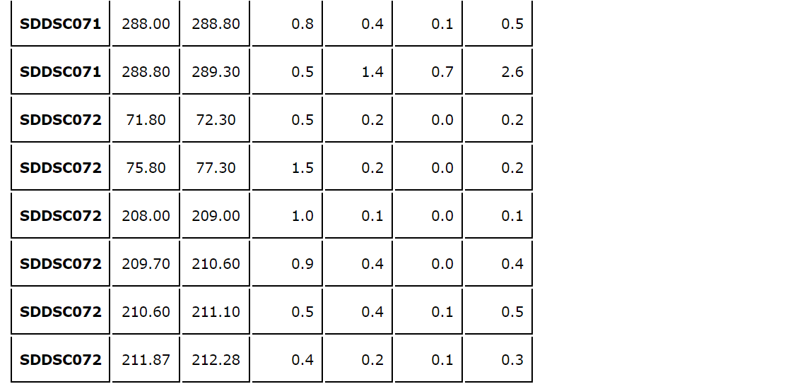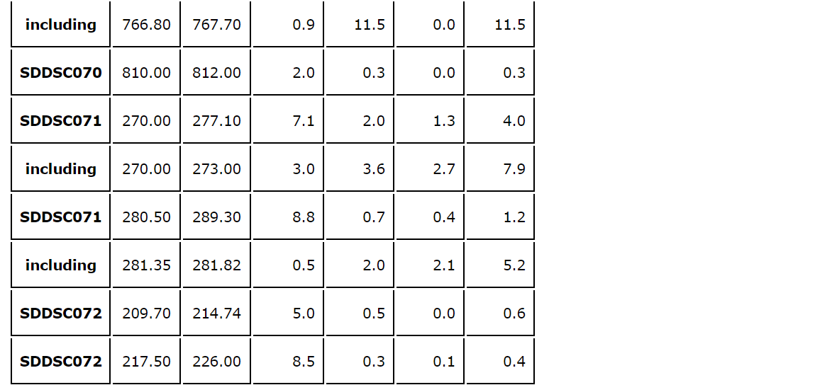 - The same vein was tested up dip in SDDSC072, with lower-grade results (see an attached table).