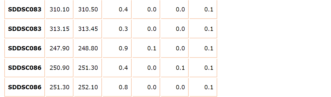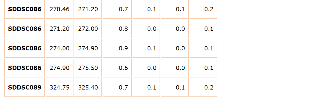 - SDDSC086 (150 m west of previous drilling):