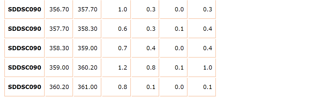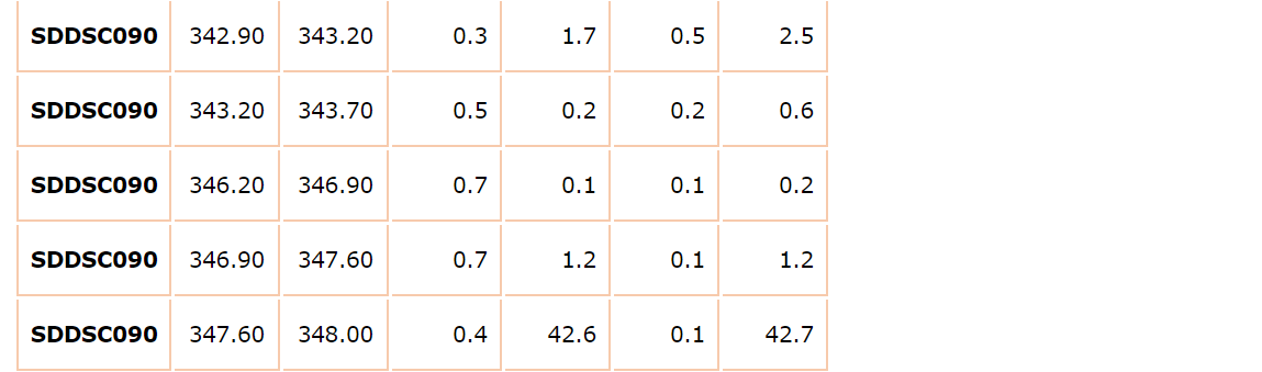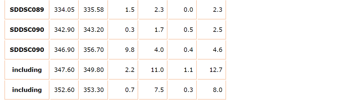 SDDSC090, drilled 250 m west of previous drilling, intersected: