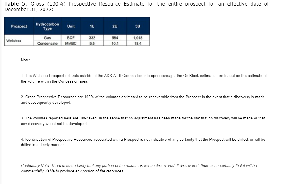 The ADX-AT-II concession was granted in April, 2022, and has a 16-year duration. The only commitment associated with the concession is drilling the Welchau-1 well. Planning for the well is advanced with an AFE for the well issued and a drilling rig contractor identified.