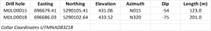 The best mineralized intervals intersected in drill hole MDLD0018 are summarized in the following table.
