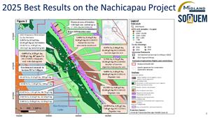 MONTREAL, Dec. 04, 2025 (GLOBE NEWSWIRE) -- Midland Exploration Inc. (“Midland”)(TSX-V: MD), in partnership with SOQUEM Inc. (“SOQUEM”), is pleased to announce the results of the 2025 exploration campaign on the Nachicapau project. This exploration program follows the discovery, between 2022 and 2024, of a major hydrothermal system with high-grade copper, gold and silver, characterized by strong structural control, over several kilometres. These new results are reported under the Strategic Alliance between Midland and SOQUEM (the “Alliance”) in the Labrador Trough in Nunavik, Quebec.