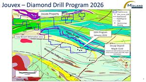 MONTREAL, Jan. 15, 2026 (GLOBE NEWSWIRE) -- Midland Exploration Inc. (“Midland”) (TSX-V: MD) is pleased to announce the start of a 1,600-metre drilling program on its Jouvex gold property, wholly owned by Midland and located approximately 10 kilometres northwest of the Douay deposit.
