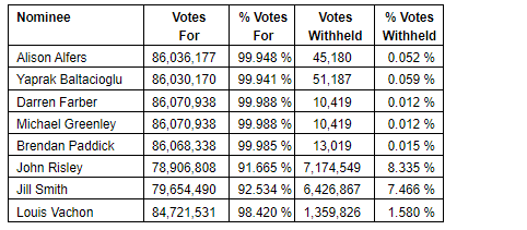 MDA Ltd. has released the results of its annual meeting of shareholders which took place virtually on May 12, 2023. A total of 86,226,293 common shares (representing approximately 72.230 per cent of all issued and outstanding common shares of MDA) were represented at the meeting. The complete voting results for each item of business at the meeting are presented herein.