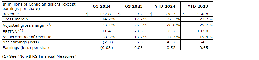 Revenue of $132.8-million, down 11 per cent from the $149.2-million recorded for the same quarter last year.
