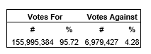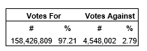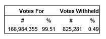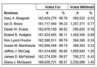 An advisory resolution was passed accepting the corporation's approach to executive compensation. The voting results are provided in the attached table.
