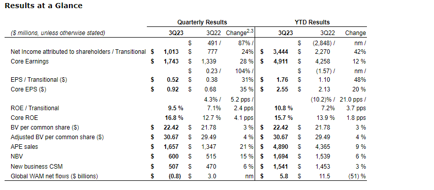 MANULIFE REPORTS THIRD QUARTER 2023 RESULTS