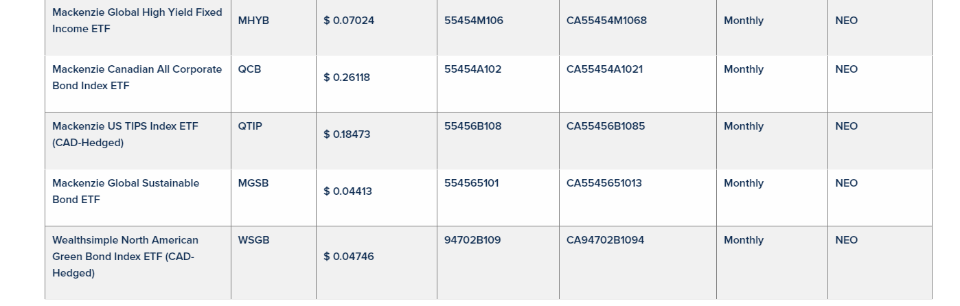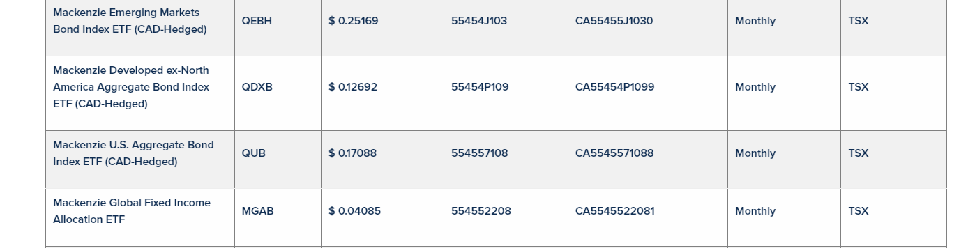 Mackenzie Investments has declared the April, 2023, monthly cash distributions for its exchange-traded funds listed in an attached table that trade on the Toronto Stock Exchange and the Aequitas NEO Exchange. Unitholders of record on May 2, 2023, will receive cash distributions on May 9, 2023.