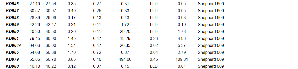 Shepherd Southern extension drilling defines new high-grade domain, including intercept highlights of: