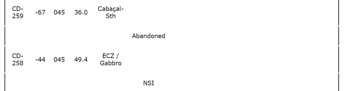 The drilling program at Cabacal continues to follow recommendations arising from the PEA. The resource definition program aims to achieve better definition of the higher-grade trends within the broader mineralized halo. The projection of the high-grade trend at shallowing depths in CD-264 returning 12.6 m at 15.5 g/t AuEq from 43.3 m is encouraging. Further drilling is being scheduled to test for the projection of the trend within the broader footprint of Cu-Au mineralization, both to the northwest and southeast, where the drill spacing is currently more open.
