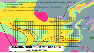 Following the completion of surface prospecting work by the MERN, they counted the presence of a minimum of 17 pegmatites on the Amanda property. Also, following the analysis of historical drilling logs carried out on the Amanda project, the Company identified the presence of other unidentified pegmatites, in sectors where there were none noted on the surface.