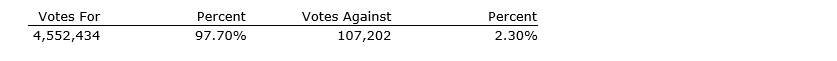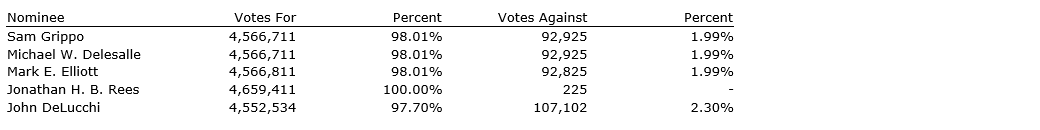 All five nominees were re-elected as directors of the company, as detailed in an attached table.
