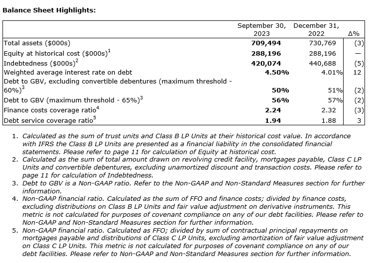 Information included in this news release is a summary of results. This news release should be read in conjunction with the REIT's Q3 2023 quarterly report to unitholders. The REIT's consolidated financial statements and management's discussion and analysis for the period ended Sept. 30, 2023, can be found on the REIT's website and on SEDAR+.