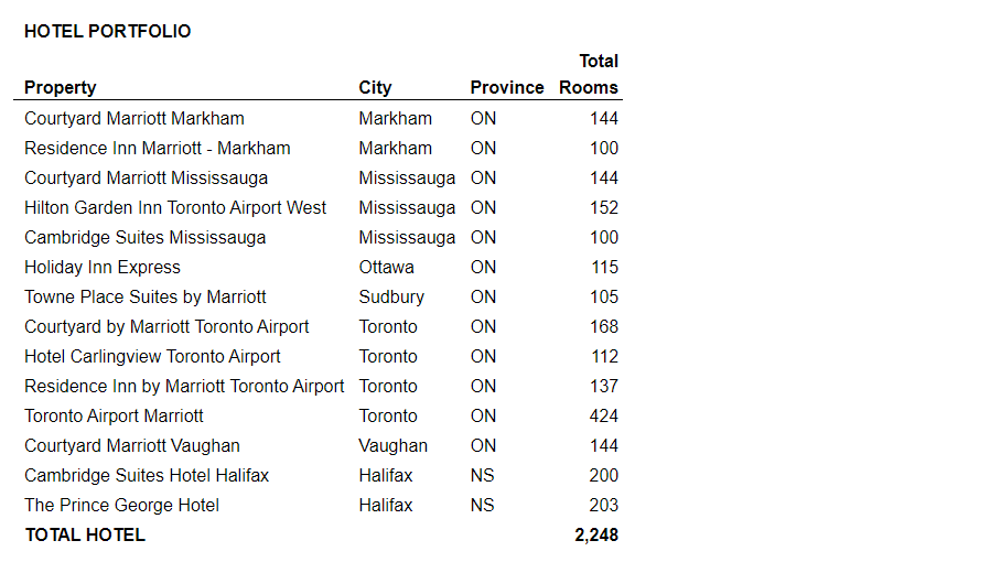 "It is an opportune moment to divest these properties given the current market demand for a hotel portfolio of this size and quality, as well as their enhanced market value," said K. Rai Sahi, chairman and chief executive officer. "Morguard has strategically divested our hotel portfolio to align with our objectives of strengthening the company's balance sheet while owning a high-quality portfolio of income-producing real estate."