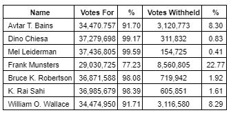 Votes for % Votes withheld %