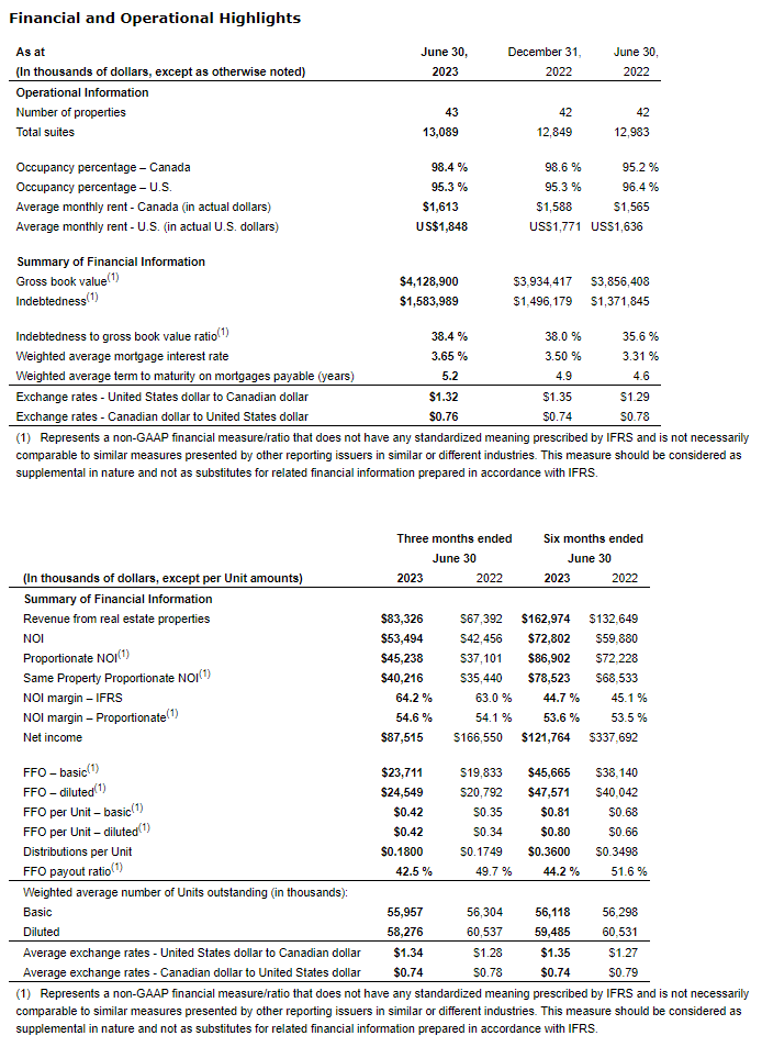 Morguard North American Residential REIT has released its financial results for the three and six months ended June 30, 2023.
